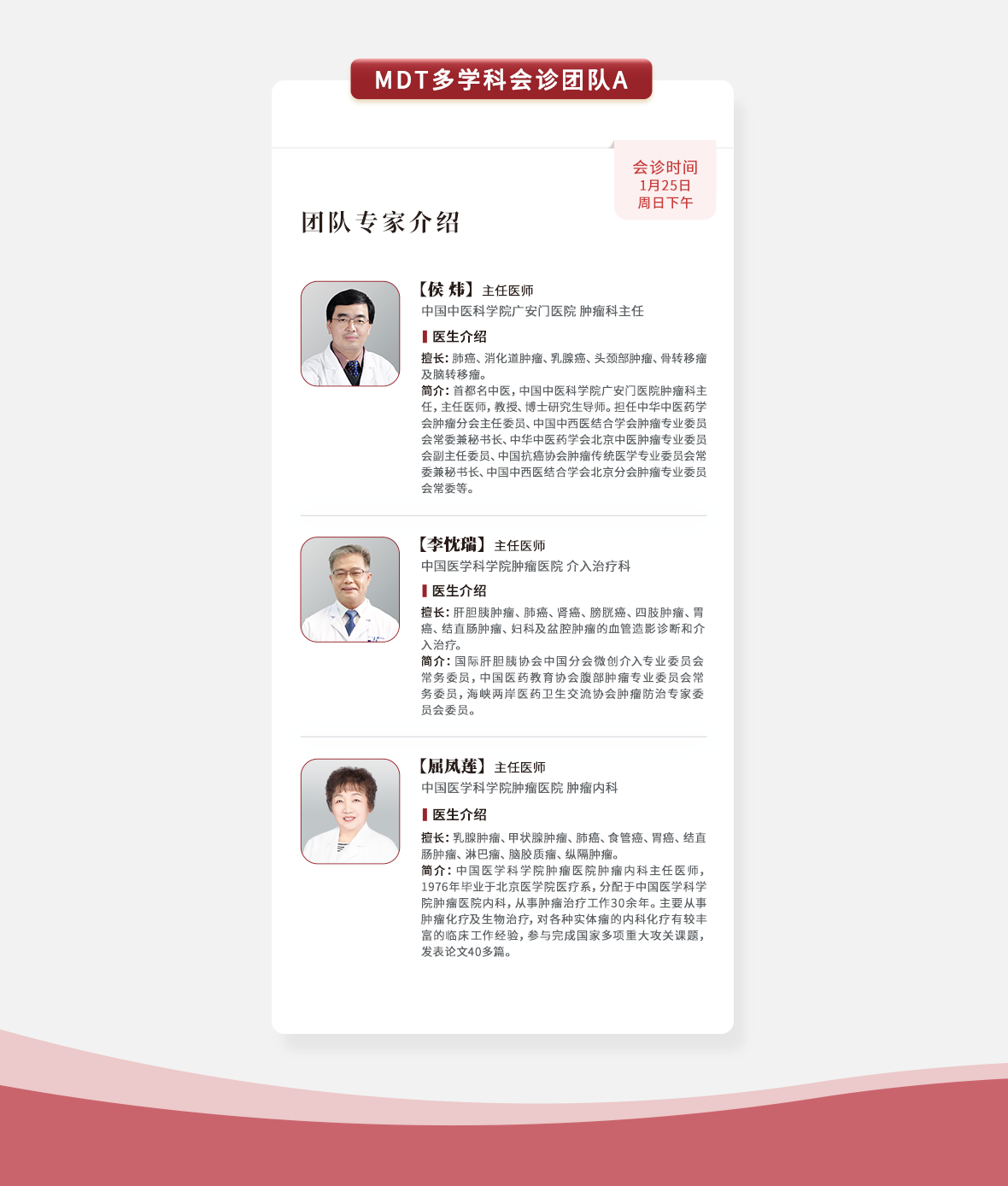 汇聚国内临床、病理、检验、中医、西医、中西医结合领域的肿瘤知名专家。