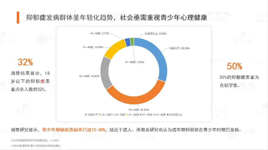 清晨的校园里,课间操的广播声与孩子们的嬉闹声交织成青春的背景音。然而,在这片看似充满活力的图景背后,一组数据却撕开了美好的表象——青少年抑郁症患病率为15%-20%;在抑郁症患者群体中,50%为在校学生,其中41%曾因抑郁休学。